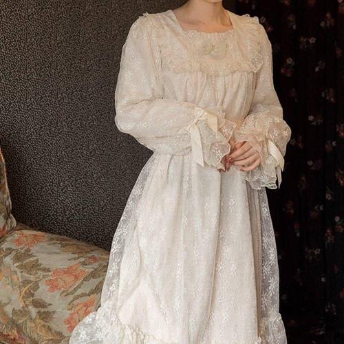 원피스 크림 플라워 교복대여 리본 개화기드레스 WFLQAZ7