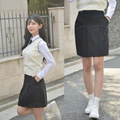 [셀럽하우스]라인이 PMRA0817 블랙 교복 예뻐보이는 교복몰 주름치마 교복치