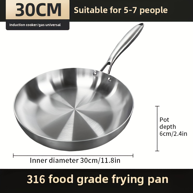 TEMU KEMORELA 단일 스테인리스 스틸 프라이팬, 6.88/9.44/10.23/11.02/11.81인치 사이즈로 제공, 무코팅 | 반짝이는 표면 디자인, 다양한 음식을 요리에 적합, 모든 스토브 타입과 호환 - 프라이팬, 주방용품, 세련된 메탈 엔드