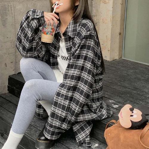 TEMU 긴팔 셔츠 봄/가을 체크 자켓 포켓 포함