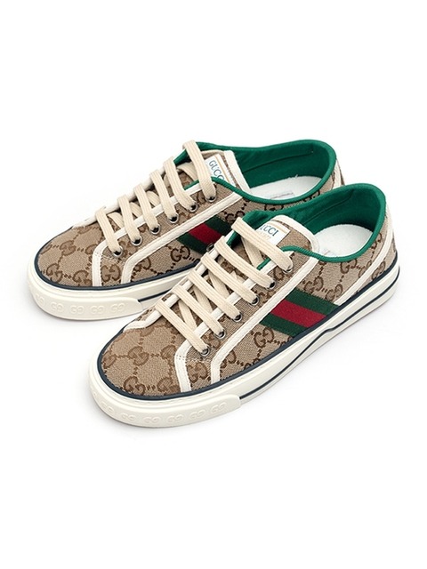 국내 A/S 가능 구찌 여자 스니커즈 GG 테니스 1977 트레이너 베이지 에보니 오리지널 캔버스 606110HVK209766 해외직진배송
