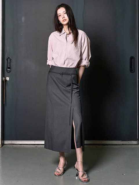 [구호플러스] Belted HLine Long SkirtAsh Stripe (KE6227M044)
