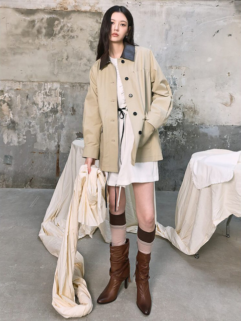 [구호플러스] Collar Detail Midi JacketAsh Brown (KE6230M04D)