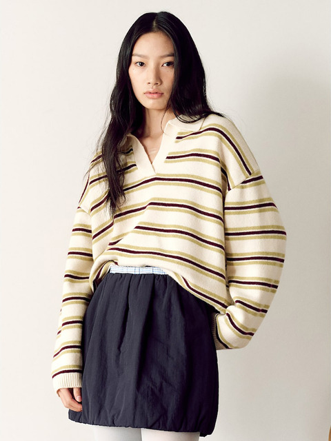 [구호플러스] Wool Stripe Open Collar Knit PulloverIvory (KE4X51M070)