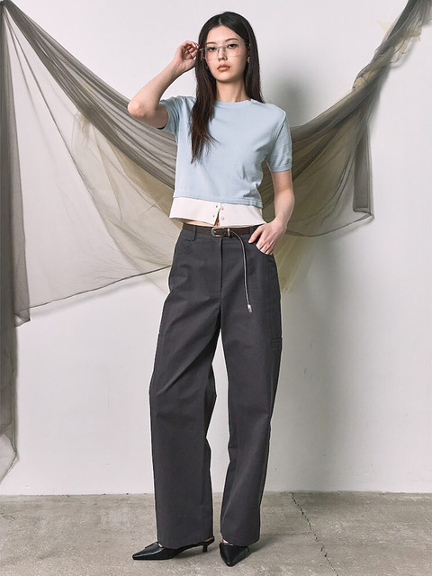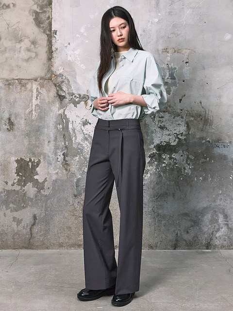 [구호플러스] Belted Semi Wide Slacks PantsGrey (KE6221M023)