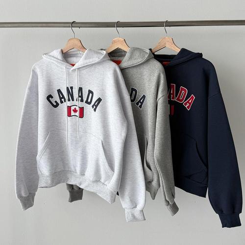 [옷자락] 여성 국기 프린트 기모 후드티 오버사이즈 겨울 티셔츠