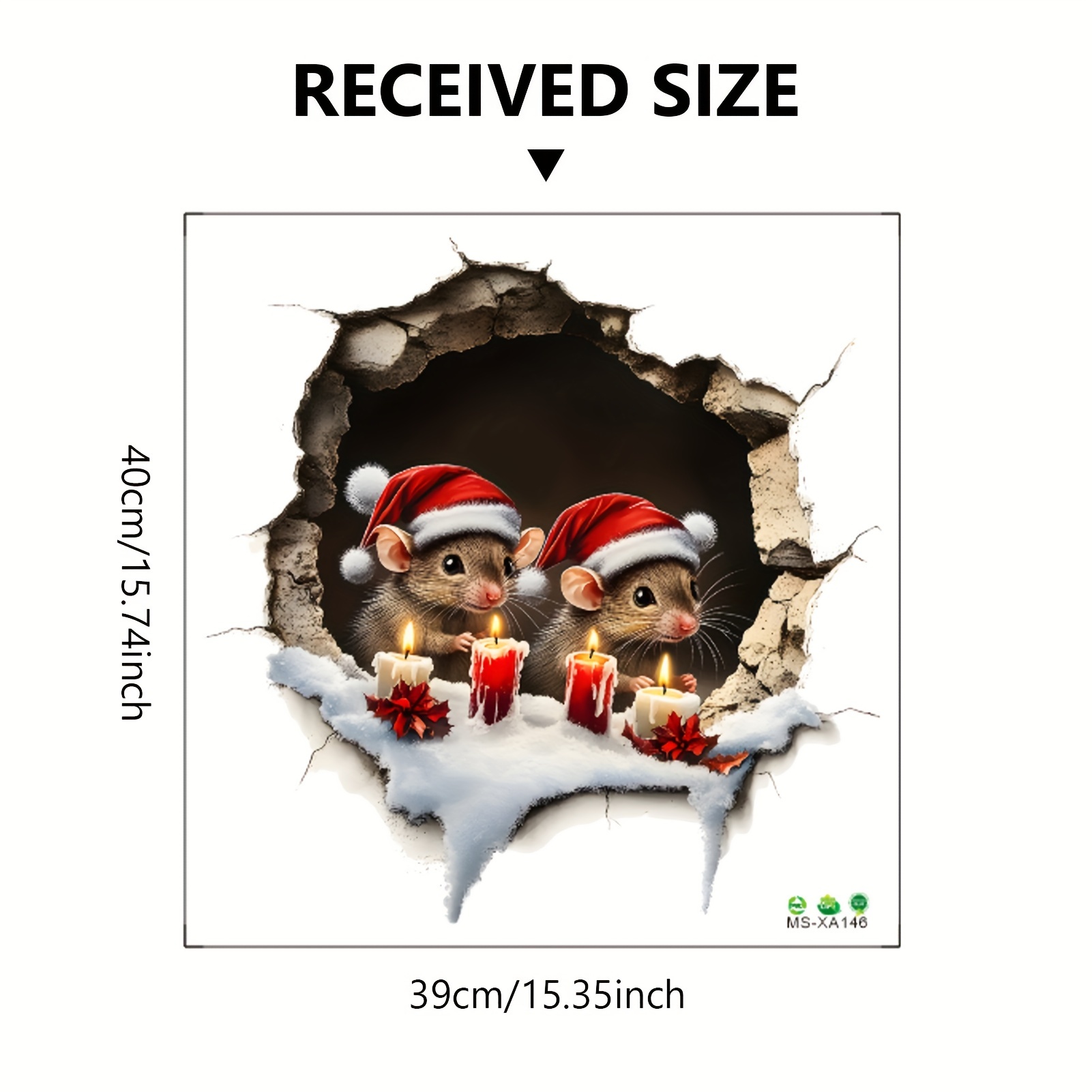 TEMU 크리스마스 기분 3D 벽 스티커 - 귀여운 쥐 & 촛불 디자인, 거실, 침실, 사무실용 쉬운 붙이기 - PVC 홈 데코