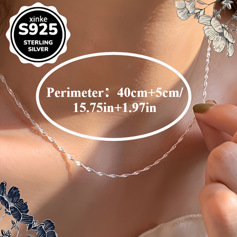 TEMU S925 실버 웨이브 패턴 목걸이, 사계절용 우아한 패셔너블 디자인 - 완벽한 선물 아이디어: , 휴가 파티 모임, 생일 졸업, 발렌타인데이, 어버이날, 크리스마스