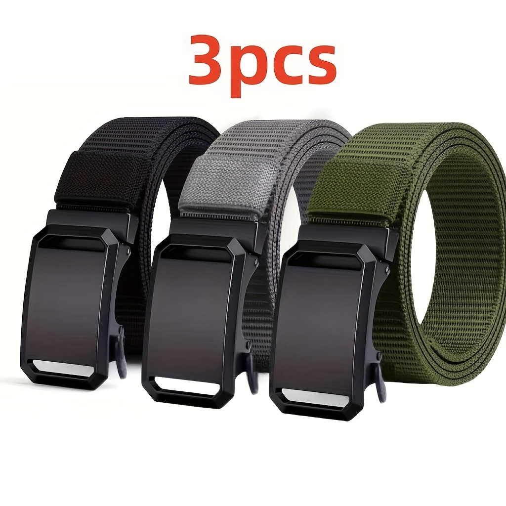 TEMU 3개 남성용 자동 버클 나일론 벨트 - 블랙, 그레이, 블루, 캐주얼 & 비즈니스 스타일, 내구성 있는 철 버클, 야외 스포츠, 일상 출퇴근, 공식 의상 액세서리 | 현대적인 벨트 디자인 | 내구성 있는 벨트, 다용도 벨트, 남성용 벨트, 남성용 벨트, 전술 벨트, 나일론 벨트, 남성용 하이킹 벨트 소형 버클