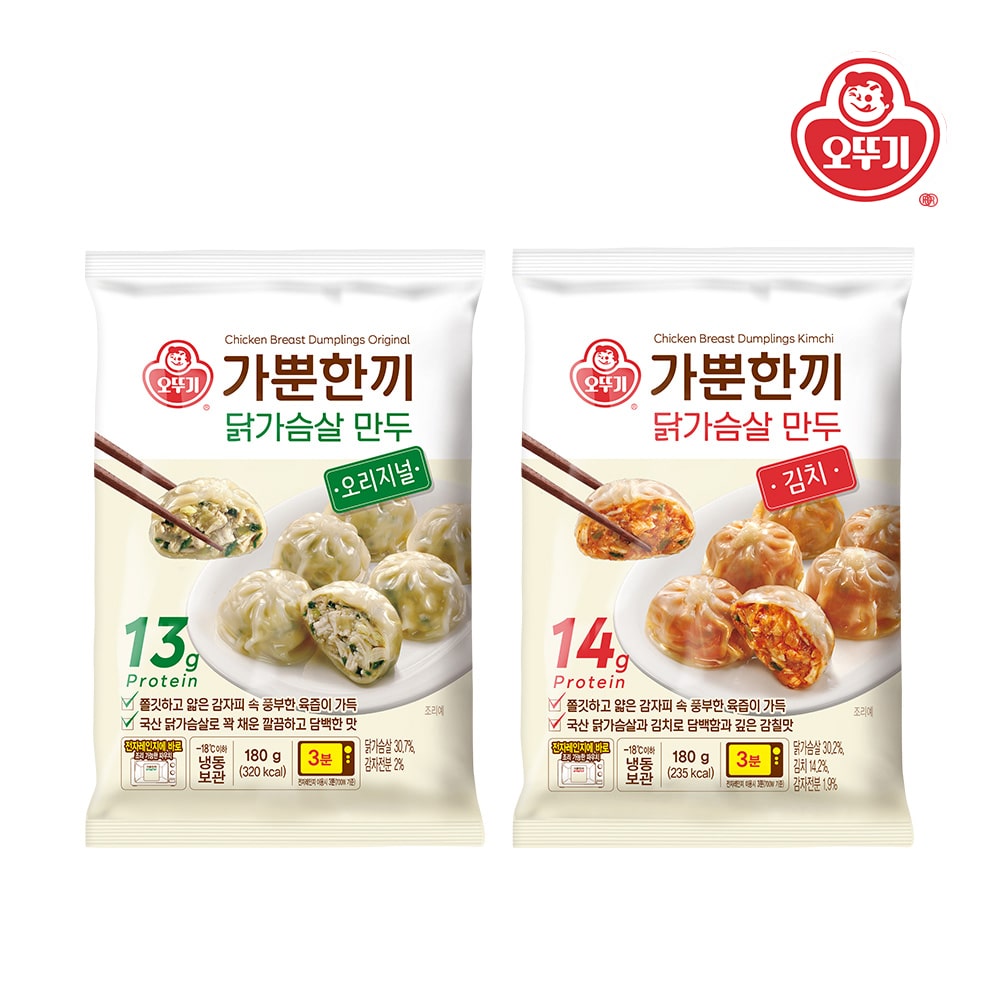 가뿐한끼 닭가슴살 만두 오리지널 180g*1개+닭가슴살 만두 김치 180g*1개
