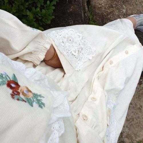 봄 가을 여성 미디 원피스 꽃장식 귀여운 스타일 빅카라 긴소매 드레스 JS