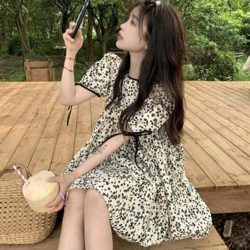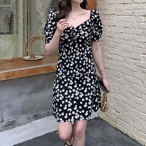 [셀럽하우스]여성 KOFJ1520 귀여운 캐주얼 플라워 패턴 미니 원피스