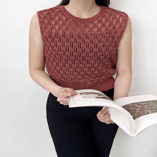 그물 짜임 여리여리 크롭 기장 펀칭 여성 니트 조끼