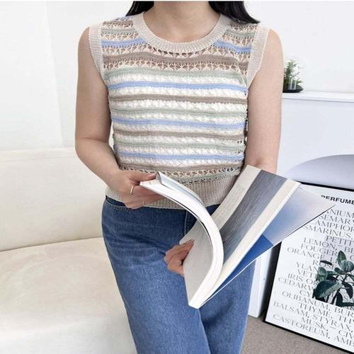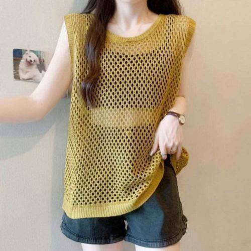 [셀럽하우스]여성 KUUP3565 여름 니트 그물 민소매 나시 조끼 캐쥬얼 바캉스