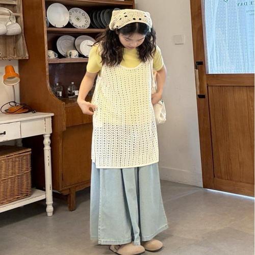 [셀럽하우스]여름 RNUD2227 트렌디 니트 뜨개 그물 뷔스티에 조끼 레이어드