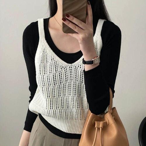 조끼 민소매 니트 뷔스티에 여자 여름 그물 레이어드 WFLQ85E