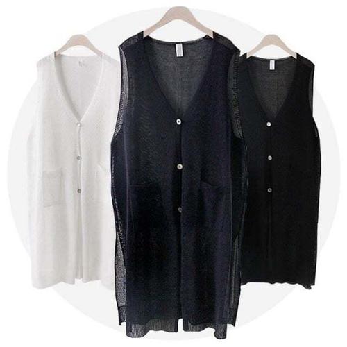 [셀럽하우스]여자 RRWD5896 양 옆 트임 그물 펀칭 롱 조끼 URK-500