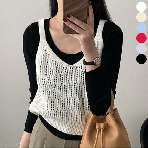 [셀럽하우스]뷔스티에 RVGS7020 레이어드 그물 조끼 니트 뜨개 여름 트렌디