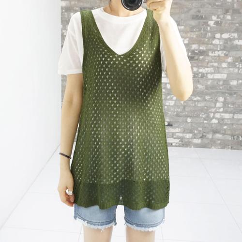 [나크21] 시원시원한 그물짜임 니트 베스트 NK42-T-57