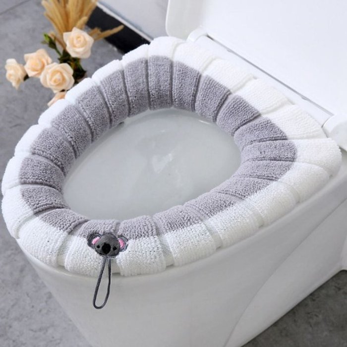화장실 극세사 변기커버 O자형 변기시트커버 폭신한 손잡이 변기방석 욕실 변기덮개 양변기패드