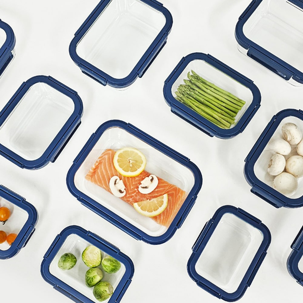 글라스락 밀폐용기-직사각 내열강화유리 냉장 냉동고보관용기 유리반찬통 전자렌지그릇 사면결착