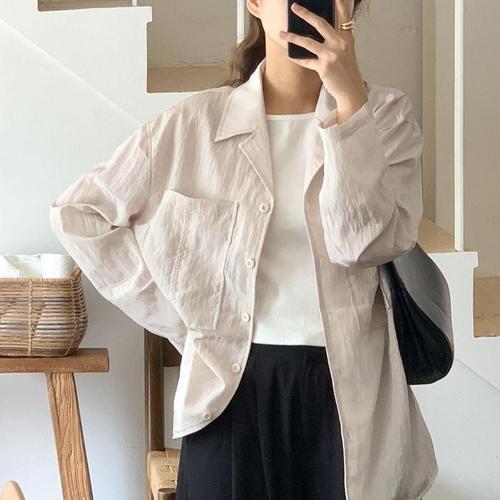 여자 주머니 재킷 글로시 바스락 FW 카라 셔츠