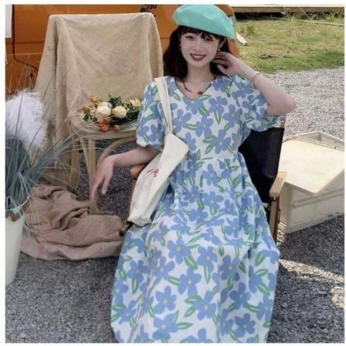 [셀럽하우스]그린 DRUQ1385 롱원피스 블루 원피스 빅플라워