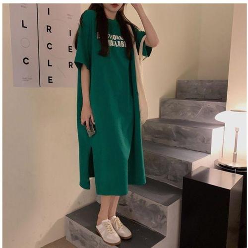 [셀럽하우스]원피스 XUTL2428 롱 캐주얼 그린 여름 반팔 오버 루즈
