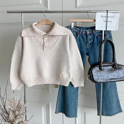 [스테파니]금단추 카라 니트쟈켓/A25JK5409