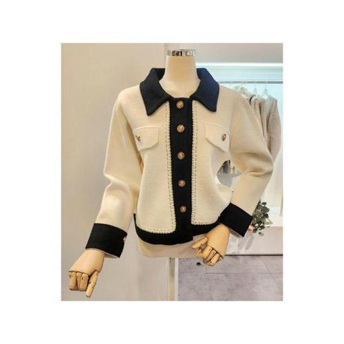 [클리지]CO8WJK23 카라 배색 금단추 니트 자켓