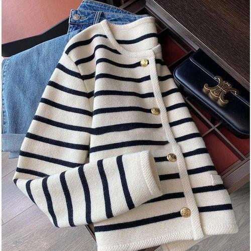 [셀러허브_여성트랜드패션]ONM 스트라이프 금장버튼 가디건