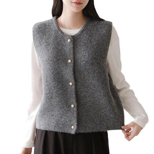 [셀러허브_여성트랜드패션]제니유 로로 여성용 금장 단추 니트 조끼 가디건 베스트