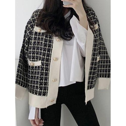 [위시드]페미닌 금장 체크 비스코스 가디건 (WIBDCD028)