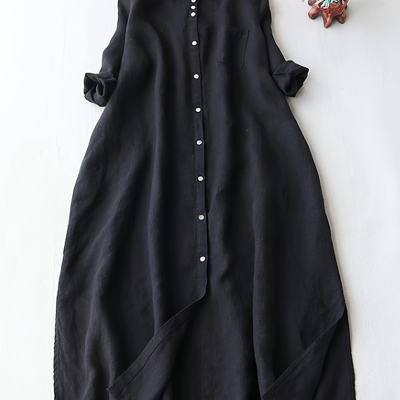 TEMU 여성 캐주얼 긴팔 미디 드레스 - 솔리드 컬러, 루즈핏, 간단하면서 우아한 스타일, 모든 계절에 완벽함
