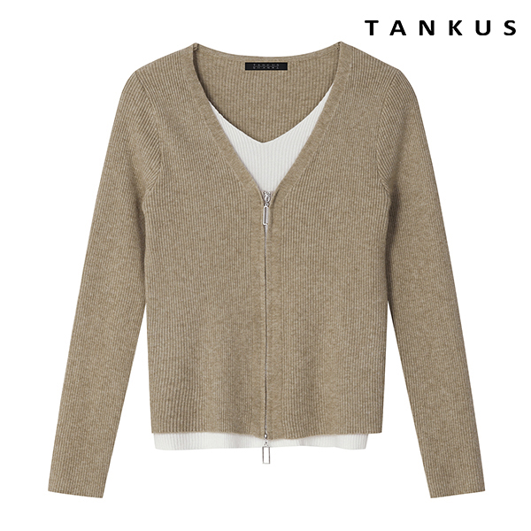브이넥 투웨이 집업 레이어드 배색 니트 (TW3KP019L0)