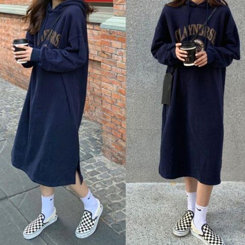 데일리 원피스 편한 여자 기모 후드 루즈핏 겨울 롱 WFLQ83L