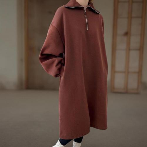 [퍼니걸스]루즈핏 라운드 무지 기모 긴팔 롱 원피스 9053 여성의류