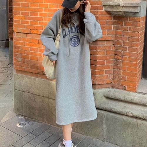 [셀럽하우스]후드 JSET7581 원피스 여성원피스 겨울원피스 기모 레터링 롱원