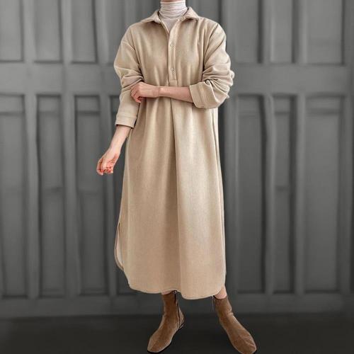 [미라클세븐]여성용 겨울 기모 반오픈 골덴 롱 원피스 빅사이즈