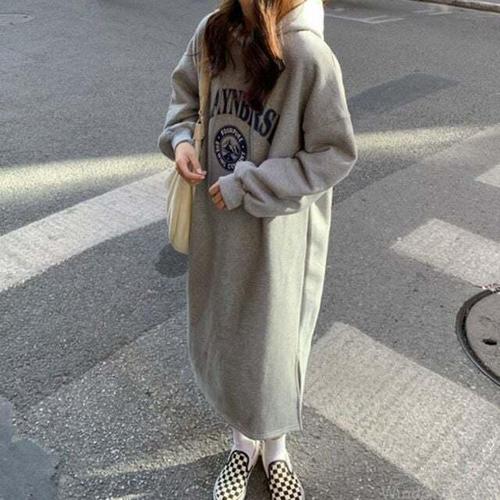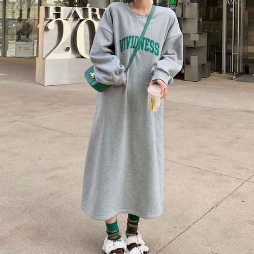 [셀럽하우스]기모 BAWN7469 안감 롱 원피스 밑단 절개 레터링