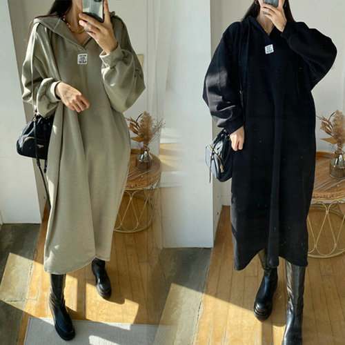 [옷자락] 여성 영문 레터링 기모 안감 후드 긴팔 롱원피스