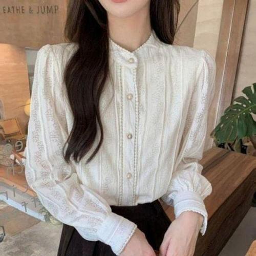 [셀러허브_여성트랜드패션]패턴 기모 레이스 플라워 블라우스 안감