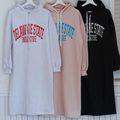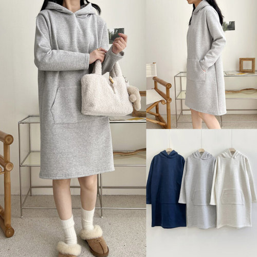 롱 후드 원피스 기모 박시 오버핏 포켓 원피스 HLO-06