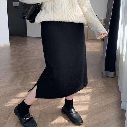 [셀럽하우스]밴딩 LNFV5524 치마 기모안감 롱 스커트 일자핏 뒷트임