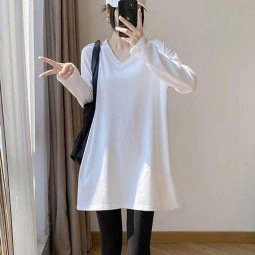 [셀러허브_여성트랜드패션]여자 티셔츠 기모 1P 롱긴팔티 보완 데일리 체형 V넥 힙커버