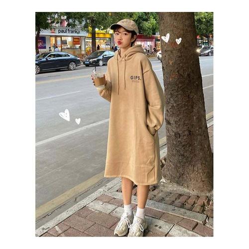 [셀럽하우스]루즈핏 DGCI9289 롱 후드 여성 도톰 기모 캐주얼 편한 원피스