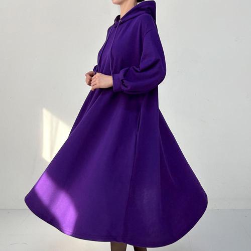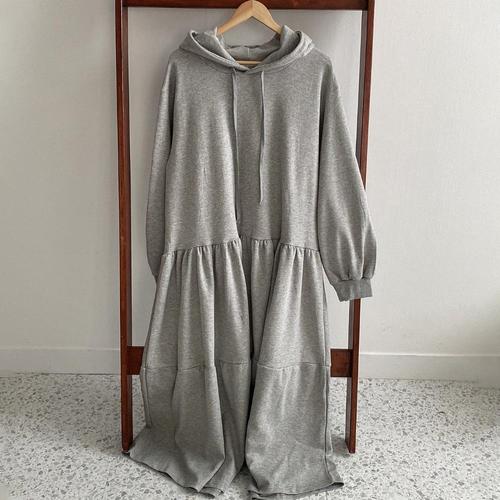 [하젤]롤스 오버핏 후드 기모 롱원피스_W4439