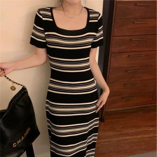 [셀러허브_여성트랜드패션]ONM 반팔 기본 단가라 스퀘어넥 롱원피스
