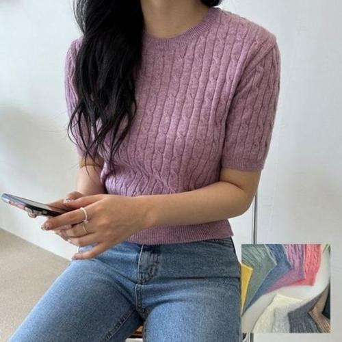 [엄지척]여자 라운드넥 세미크롭 기본 반팔 니트티 직장인코디_19659613_667501
