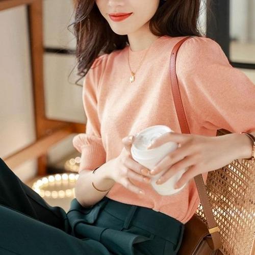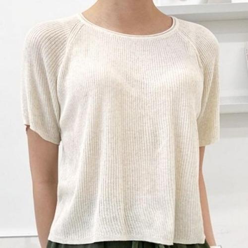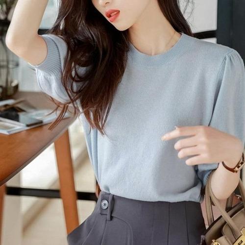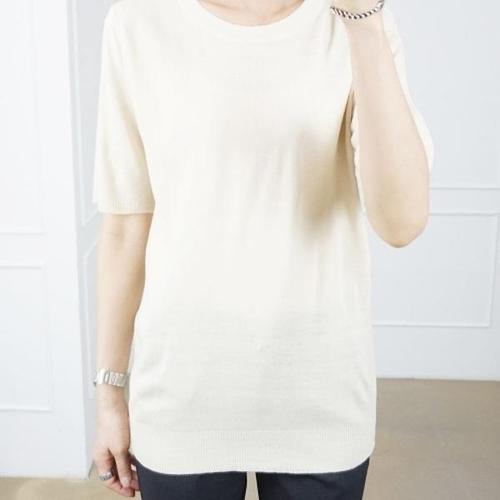 [엄지척]봄 여름 반팔 라운드 넥 여성 기본 니트 피치_19681885_667501